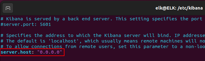 sudo vim kibana.yml