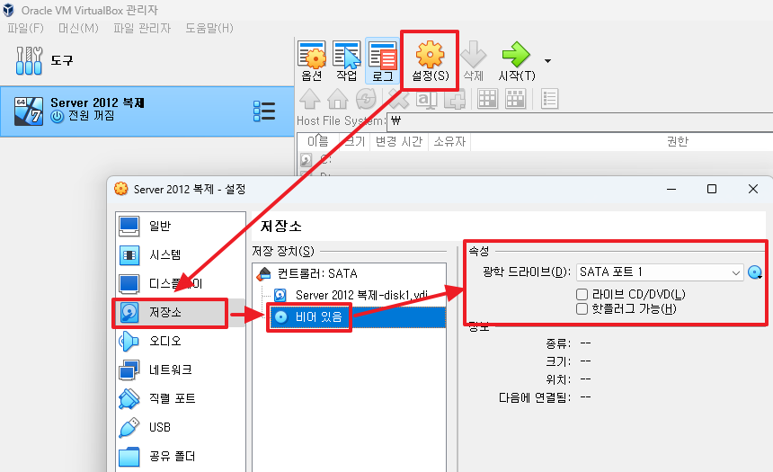 4. 다운로드 받은 서버2012 iso 파일을 넣어준다.