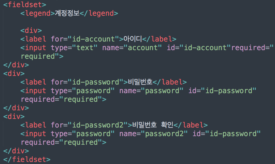 fieldset으로 큰 틀을 묶고 그 안에 label, input태그를 이용하여 내용을 채웠다.