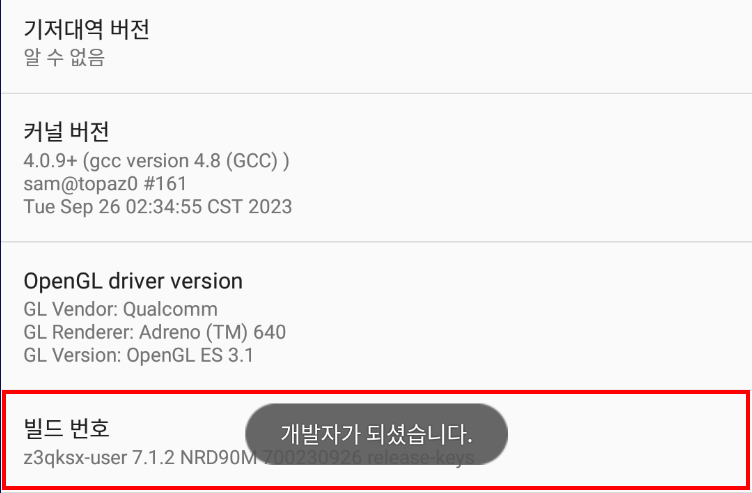 설정 - 태블릿 정보 - 빌드 번호 연타