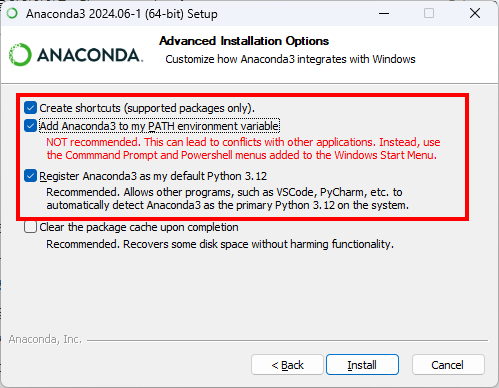 다음은 위 처럼 체크박스 세개를 모두 체크 후 Install.